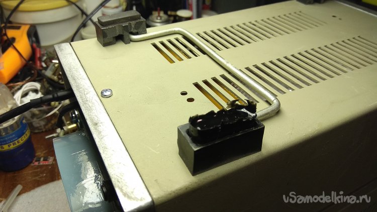 Чтобы не снимать дополнительную изоляцию с питающего провода, провел провод предохранителя к передней панели.