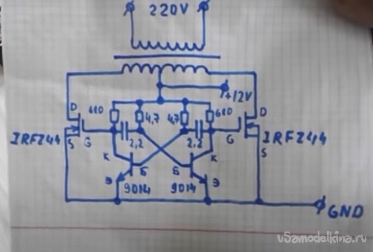 В прошлой статье я описывал бесколлекторный электродвигатель. Так вот в процессе улучшения его параметров, поймал себя на мысли, что мне приходилось сталкиваться с чем-то подобным, а именно, обмотки катушек электродвигателя, такие как у трансформатора применяемого радиолюбителями в преобразователях напряжения. В интернете много таких самоделок, наверно, только ленивый не пытался их собирать. Авторы применяют микросхемы или мультивибраторы, которые выступают в роли задающего генератора они же и управляют полевыми транзисторами.