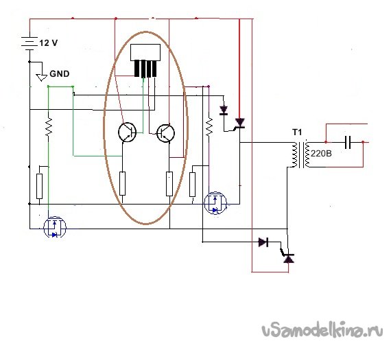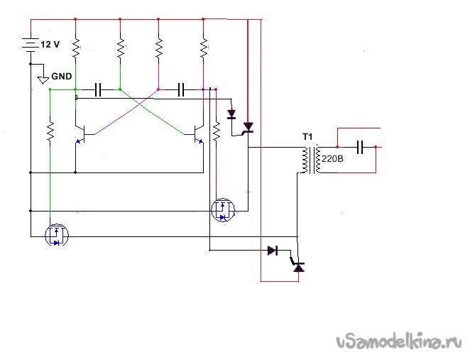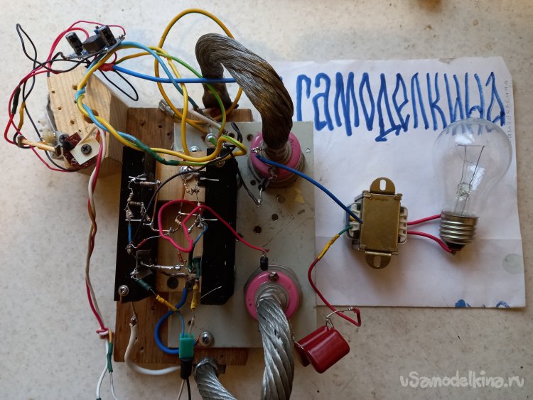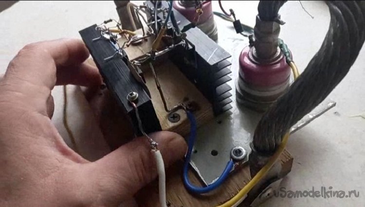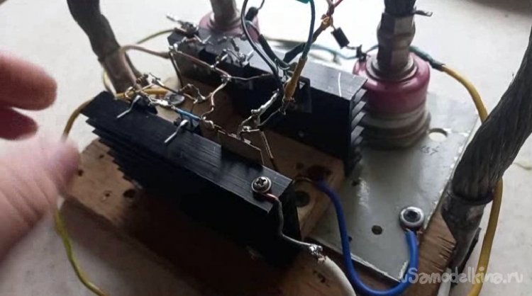я добавил два маленьких тиристора. Только не надо тут «хи- хи» и плеваться, какие были под рукой, те и применил.