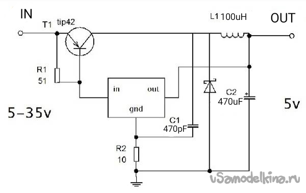 Сегодня мы соберем простой импульсный преобразователь на микросхеме линейного стабилизатора LM7805