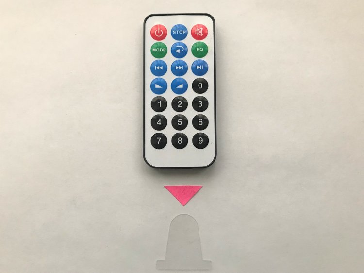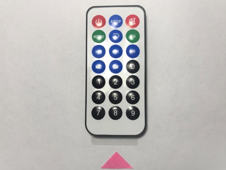 Если нужно перезапустить текущий трек сначала, достаточно на ПДУ повторно набрать его номер. Дальность действия ИК-ПДУ составляет до 10 метров. Причём, в 2-3 метрах от фотоприёмника, пульт не обязательно наводить точно на фотоприёмник, расположенный над кнопкой «Mode» на передней панели ПДФ.