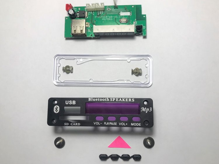 В состав заказанного Bluetooth SPEAKERS (Модуль MP3/Bluetooth/FM плеер с пультом ZTV-M01BT69, 1шт. x 575р. = 575р.) вошли два пакета: