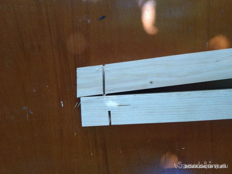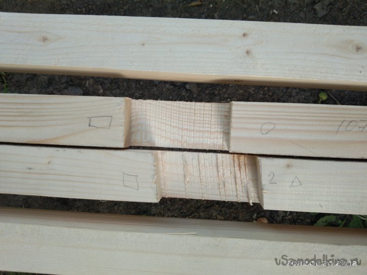 Это обрешетки которые будут устанавливаться в передней и боковой частях строения. Для задней части обрешетка должна быть более простоя и состоящая полностью из брусков 40*40 мм. Ее я собирал аналогично другим основам. Различие состояло только в том, что предыдущие обрешетки собирались уже полностью готовыми к установке. Эту же, из-за больших размеров и неудобства перевозки собирать пришлось полностью, но оставлять небольшое расстояние для распиловки пополам. Так она помещалась в машину. Процесс изготовления и сборки практически не отличим от того, что было описано выше. Единственное, здесь больше пазовых соединений. Не стал полностью фиксировать на фотографии процесс поэтапной сборки, сделал только несколько фото основных пазов. На конечном результате все хорошо видно, что и как сделано. Кто захочет - тот поймет. Ничего трудного нет.