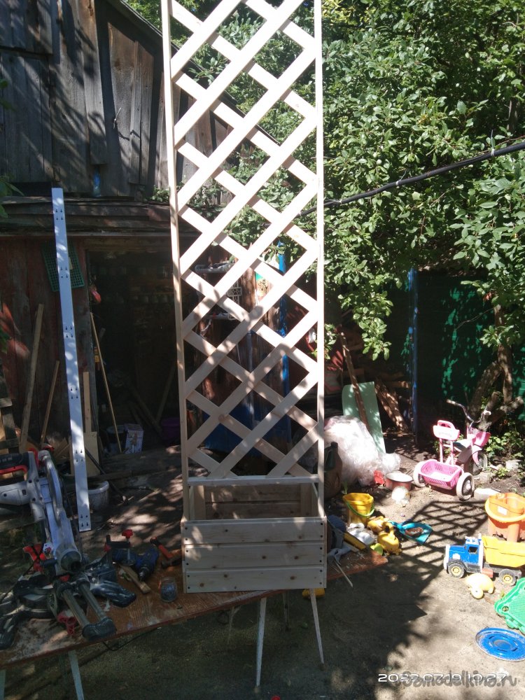 Здравствуйте уважаемые самоделкины и гости сайта! Представляю вашему вниманию очередную свою самоделку, которая была изготовлена для определенной цели. В этой статье я постараюсь дать подробное описание каждого шага в процессе изготовления и покажу что получится в итоге. Как следует из названия - у меня возникла необходимость сделать переносную шпалеру для вьющихся растений, с посадочным местом для них. Забегая вперед предоставляю вашему вниманию уже готовый результат.