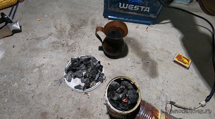 Турку я выбрал немного неправильную, тут лучше использовать плоскую посуду, так как турка упирается на угли и стоит неустойчиво. Ну что ж, воду я закипятил довольно быстро и бесплатно, причем без дыма.