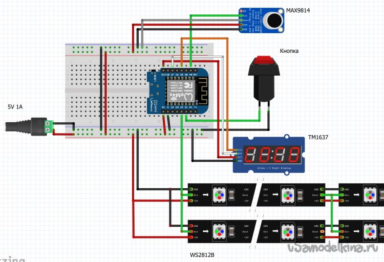 - я не использовал рекомендуемую обвязку для ленты и микрофона, но если у Вас будут проблемы, помехи или ложные срабатывания, то попробуйте добавить соответствующие электронные компоненты в цепи микрофона/ленты. Информация есть по ссылкам, приведенным выше.