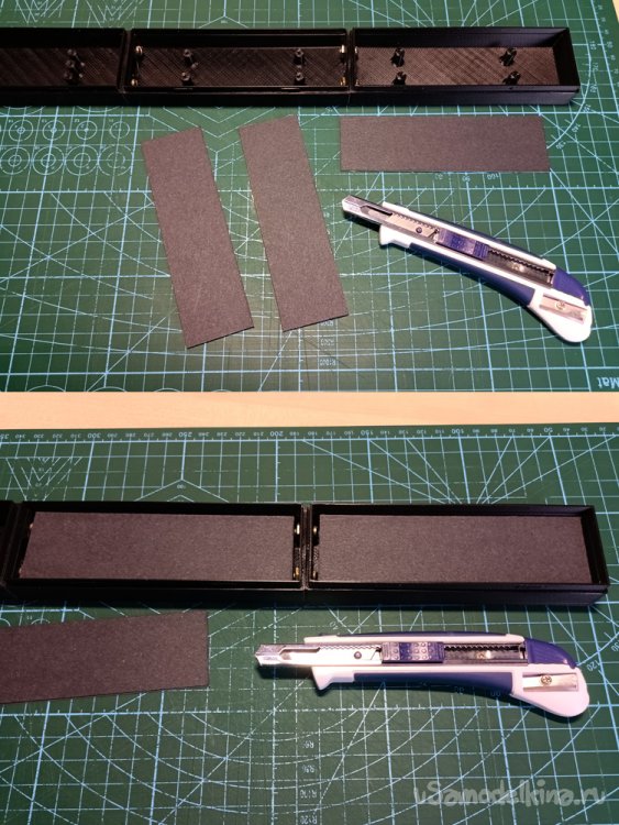 Примечание: площадку для монтажа RGB-ленты можно также напечатать, но я использовал для этой цели плотный картон – вырезав 3 элемента нужного размера (129мм х 38мм).