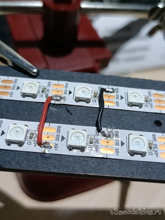 - первоначально планировалось использовать 3 ряда ленты для более яркого свечения. Но по факту оказалось достаточно 2. Вы можете использовать даже 1 ряд.