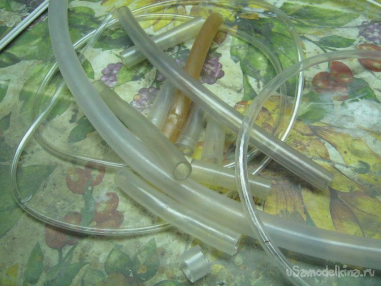 Обрезки силиконового шланга, стеклянные(пластиковые, металлические, деревянные) трубочки или стержни, ножницы, мелочи.