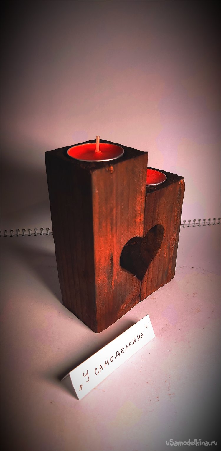 Свечи в любом доме создадут тепло, уют и комфорт. Подсвечник можно использовать в качестве декоративного украшения интерьера или преподнести в качестве сувенира на праздник, подарка родным, друзьям, коллегам на день рождение. Поделка, выполненная своими руками ценится значительно выше в сравнении с магазинными изделиями. При этом, вы не потратите безумное количество денег впустую, себестоимость изготовления с учётом работы всех станков и инструментов не более 50 рублей, а у подобных решений в магазине ценник начинается от 300 рублей и то, за такую стоимость ещё надо найти изделие, при этом никто не гарантирует что поделка экологична. Производитель, для экономии может использовать дешёвые и токсичные тонирующие краски.