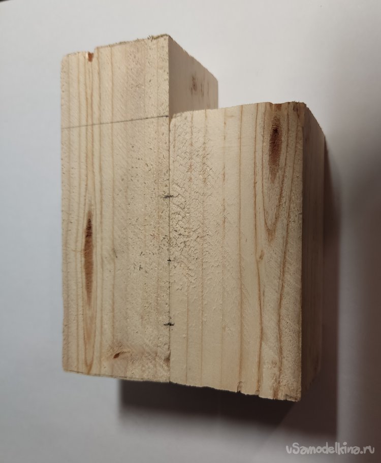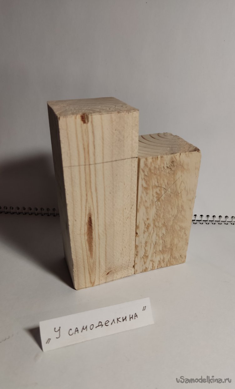 изготовленной подставке высота равна 120 мм (у самого высокого бруска), а у второго она на 30 мм меньше, то есть составляет 90 мм. Такие размеры относительно оптимальные,при том учëте, что бруски 50 на 50 будут шлифоваться, а значит стануть чуть меньше.