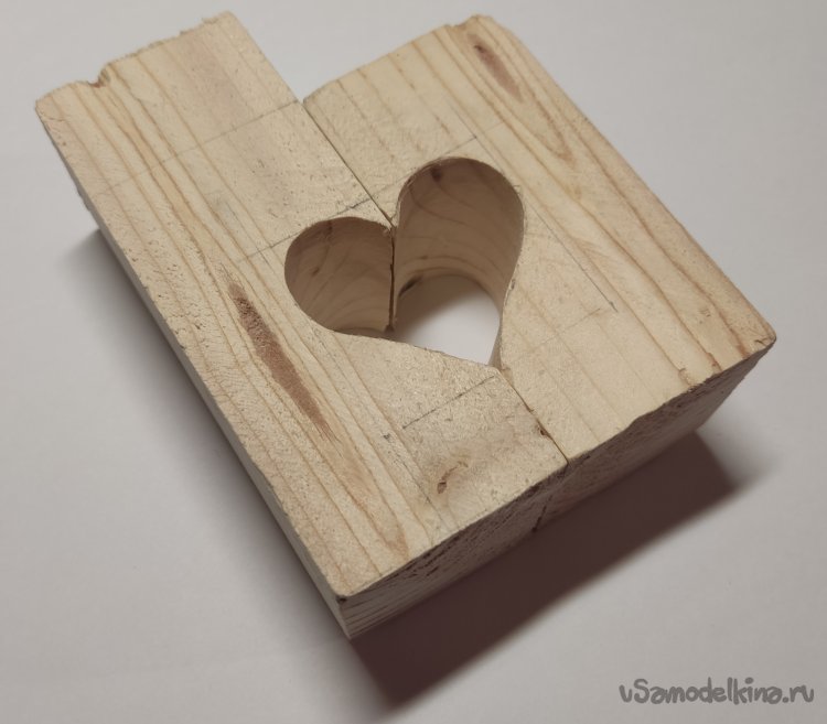 В этом случае мы по отдельности выпиливает каждое полусердечко, и только потом будем их собирать воедино.