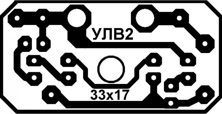 Плату для УЛВ2 можно сделать разделённой на клеточки размером 5х5 мм, но лучше не полениться и изготовить печатную плату (см. рисунки 4 и 5).