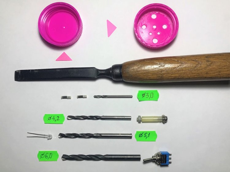 1). Корпус УЛВ2 практически ничего не стоит. Он выполнен из двух крышек от разных пластиковых бутылей: от брусничного напитка и от геля для стирки (показано в видео и на рисунках 8 и 9). Можно будет взять две крышки даже одной разновидности.