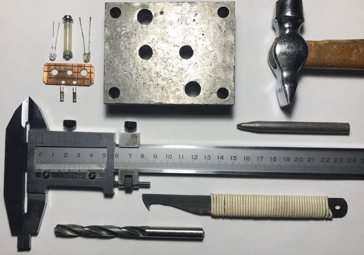 Все детали, необходимые для изготовления УЛВ2. Бирки на кабелях предназначены для маркировки «Вход» и «Выход» или для знака «РТО».