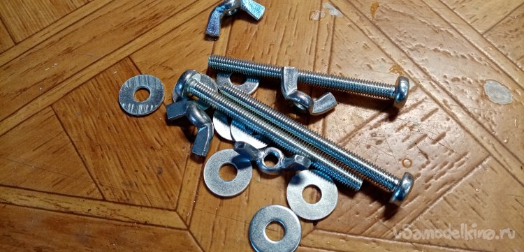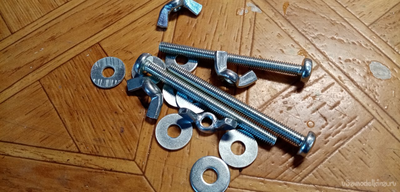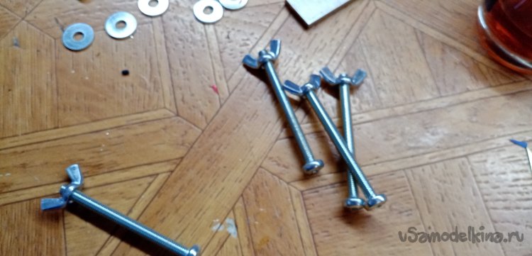В магазине закуплены элементы крепления. Длинные болтики 5х60 мм. Барашки. Усиленные шайбы.