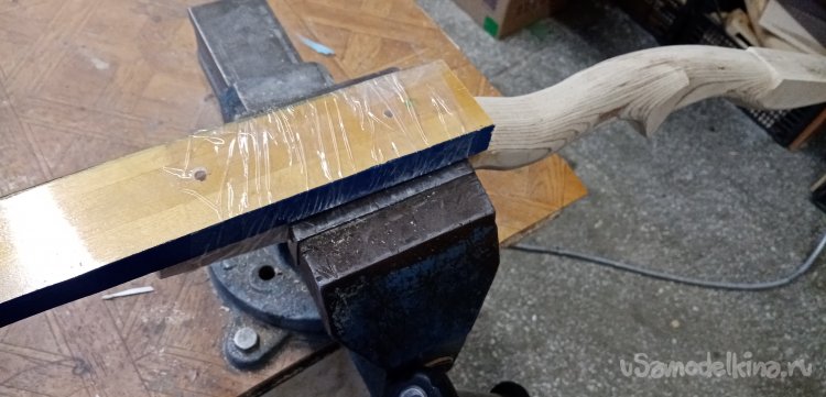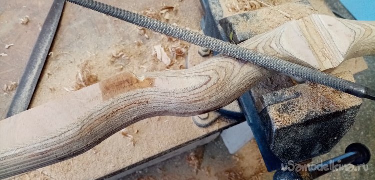 Немного подравниваю площадки крепления рогов лука. При помощи маленького, металлического рубанка.