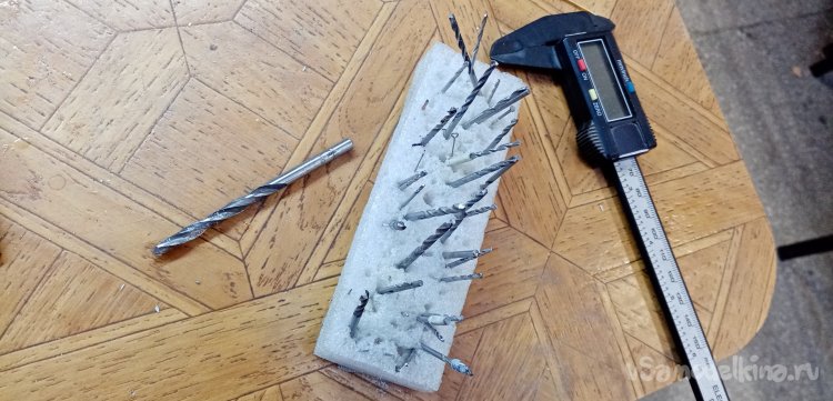 Сверлю при помощи станка. В этом случае мен нужна абсолютная вертикальность. Поскольку отверстия будут служить шаблоном при сверлении рукоятки.