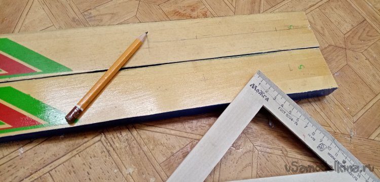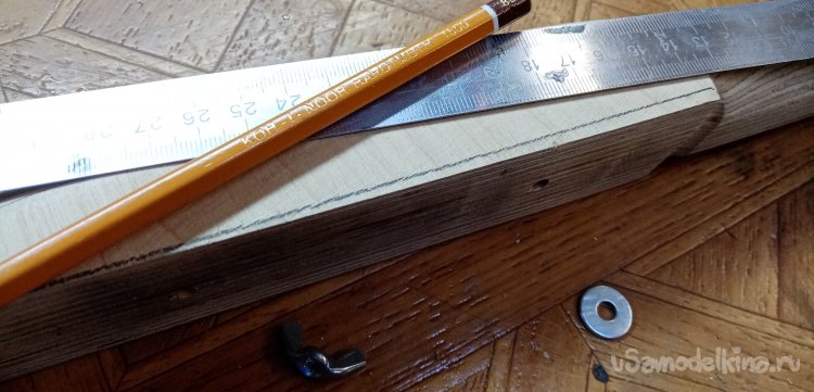 Размечаю нужную ширину комля. Сколько нужно снять рубанком с боков.