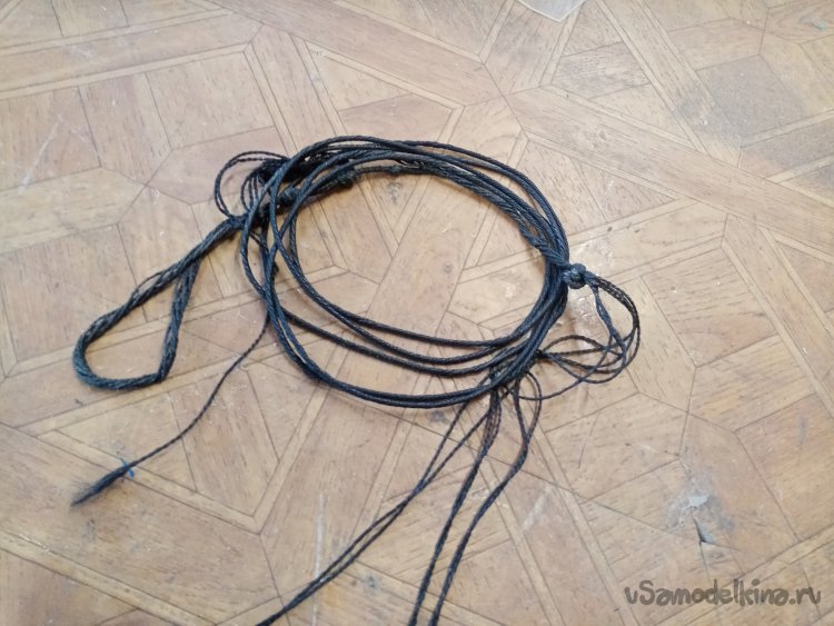Во время предпраздничных поездок по магазинам нашел вот такой моток толстых ниток. Практически не тянутся. Нужно попробовать изготовить тетиву.