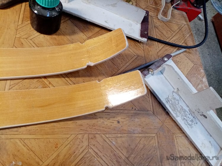 Дорабатываю концы рогов. Для лучшей укладки тетивы.