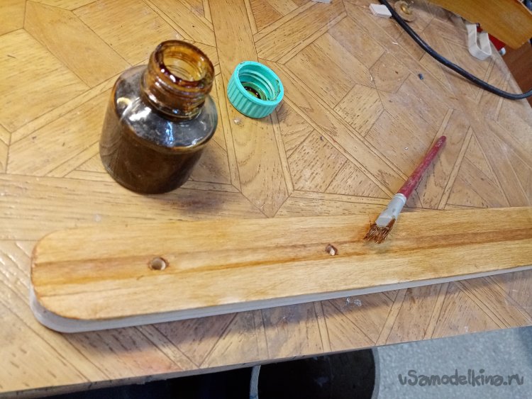 Покрываю просохшую рукоятку «электрическим» лаком для плат. На три раза. С просушкой на батарее.
