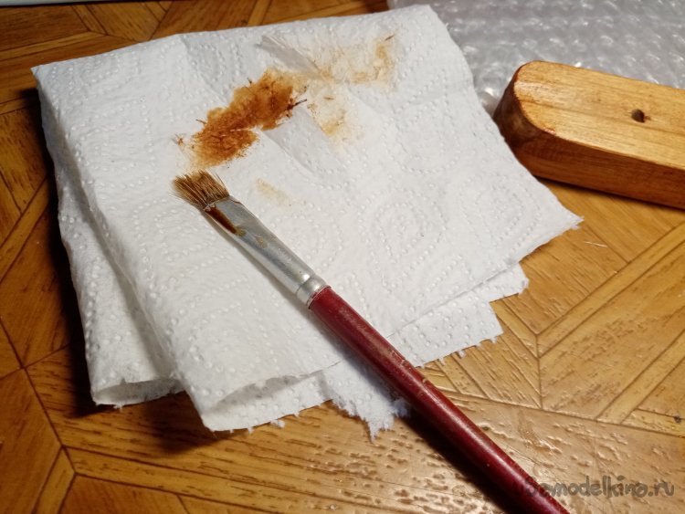 Протираю кисточку бумажным полотенцем и затем промываю в ацетоне. Еще пригодится.