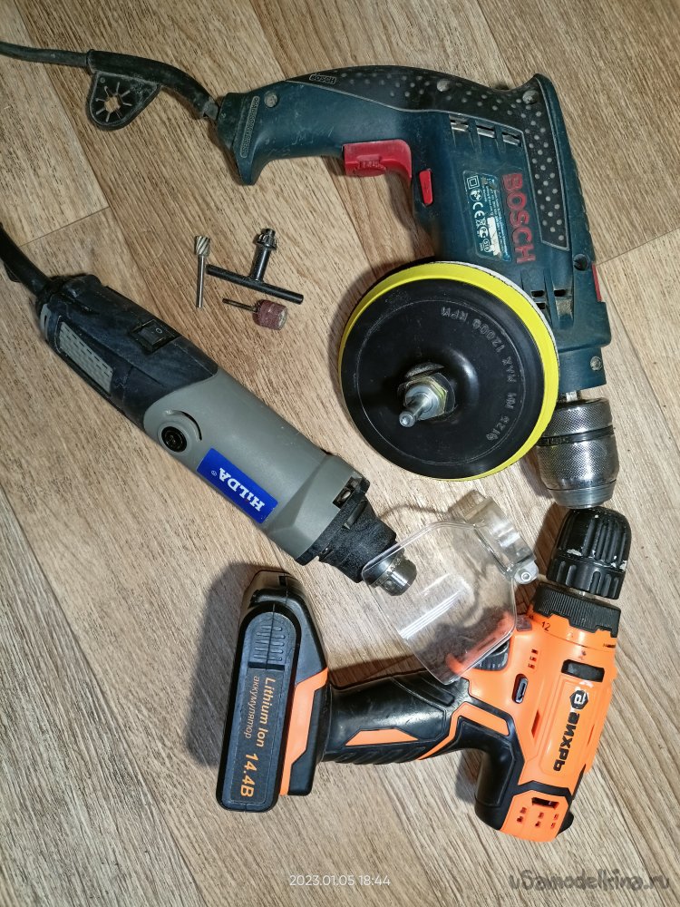 - шлифовальная насадка на дрель / шуруповерт / болгарка.