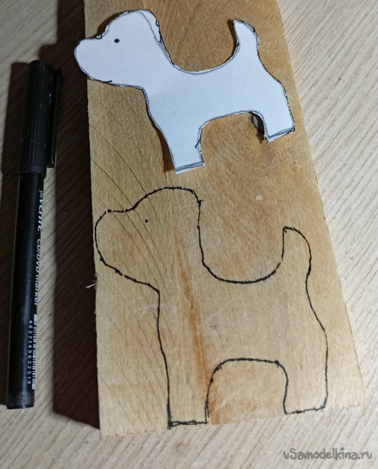 Карандашом или маркером переношу разметку на берёзовую доску, обводя шаблон фигурки по краям с припуском 1-3мм.