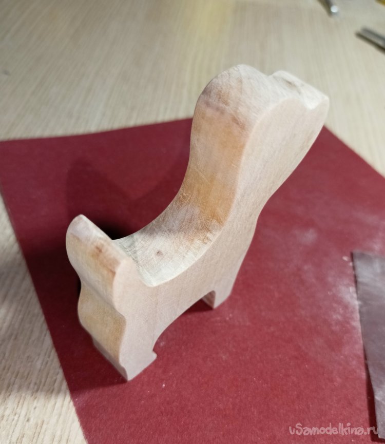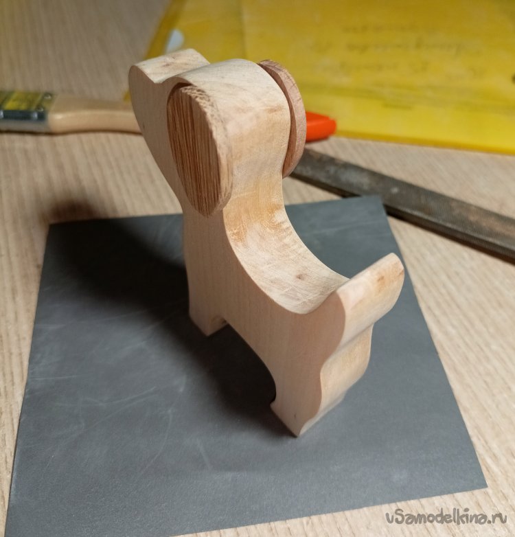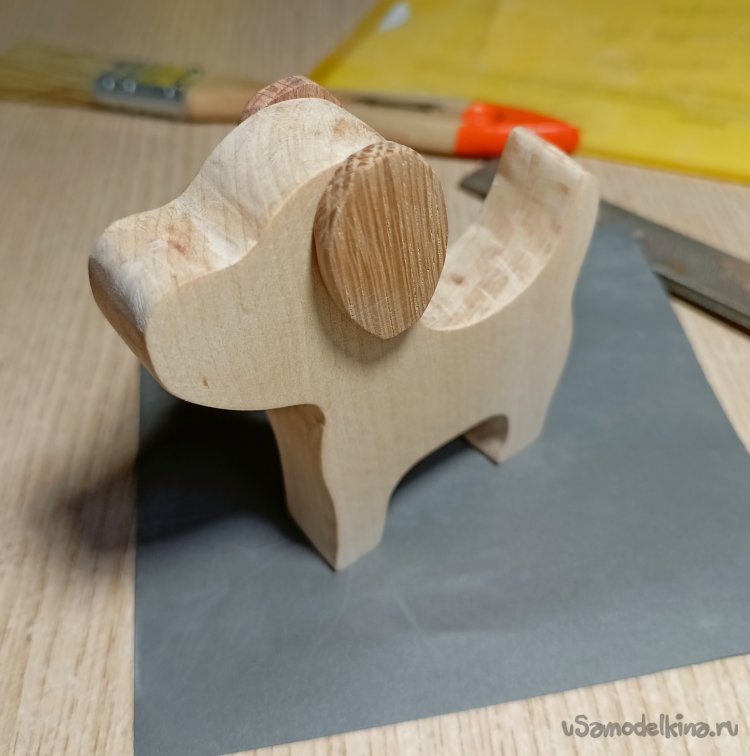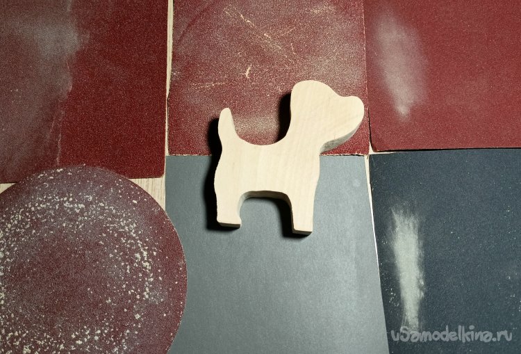Шлифуем мелкой наждачной бумагой всю фигурку собаки.
