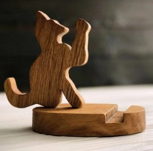 Самый лёгкий способ сделать подставку из дерева – это изготовить ее из одной дощечки, пропилив паз, но я всё же решил сделать более сложную конструкцию, но она будет более лучше и красивее. Выбирая дизайн из множества вариантов Я остановился на фигурке стоящей на основании из массива.