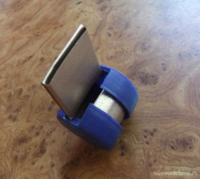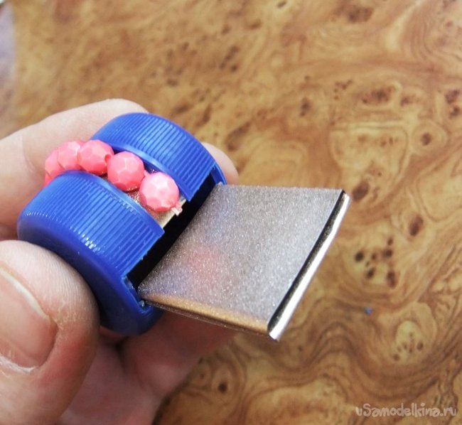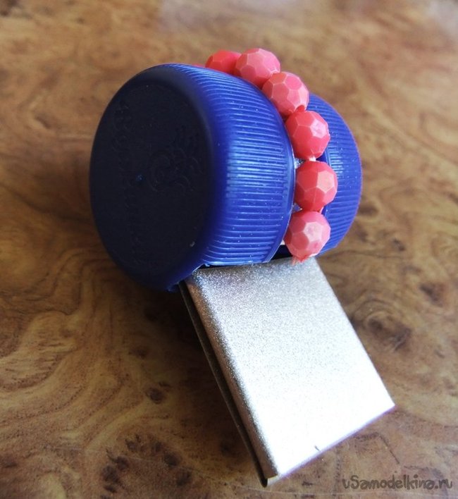 Согнуть конец пластина в кольцо по внутреннему диаметру пластмассовой пробки
