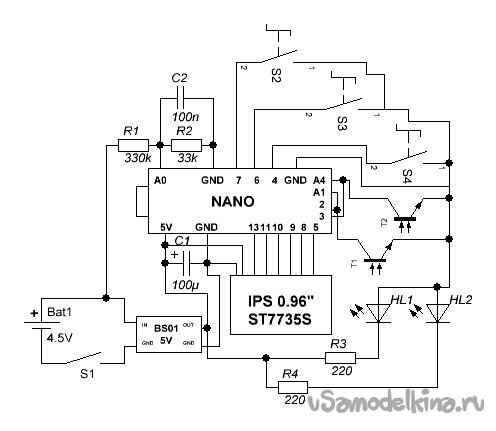 Эта схема Рис1.2 основана на элементах питания ААА. Желательно брать алкалиновые!
