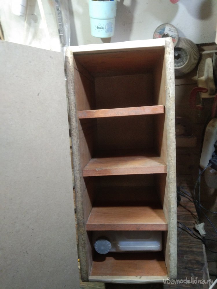 Данная самоделка по степени сложности в изготовлении совсем легкая. Я справился за несколько часов от начала и до конца. Но это при том, что основные заготовки я использовал от какого-то другого шкафчика, тумбы или чего-то там еще, т.е. их я не выпиливал. Использовал уже готовые, какие были.
