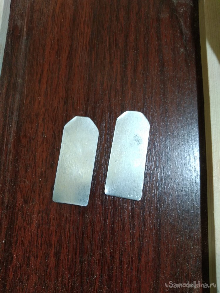 Так как шкафчик будет навесной - необходимо сделать для него ушки. Их я вырезаю из оцинкованной стали. Высверливаю отверстия для закрепления их на шкафчике и на самой стене. К шкафу крепил их обычными саморезами.