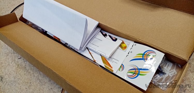 Осенью в кружок пришел наш бывший ученик. Давно не появлялся. Поскольку увлекся подводным плаваньем. Сидел на дне и не показывался. Но визит был обставлен как полагается с печеньками и подарками. Хорошо посидели, вспомнили, как летали и многое всего. В качестве подарка отдал нам недоделанный планер. Который ему подарили на день рождения. В порыве энтузиазма планер был почти полностью собран. Затем порыв угас. Недострой долгое время пылился в углу. Ностальгия взяла свое. Решил заглянуть в гости и принес такую коробочку.