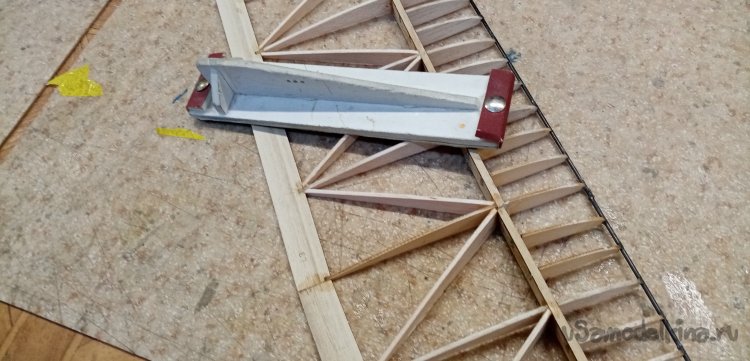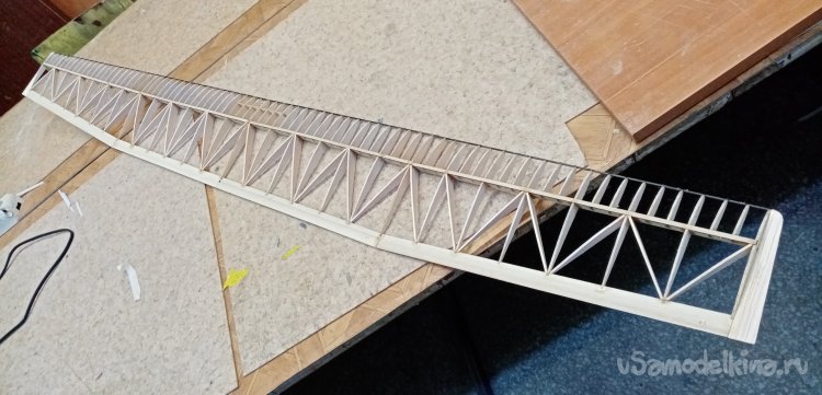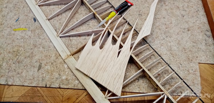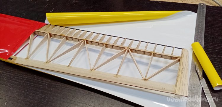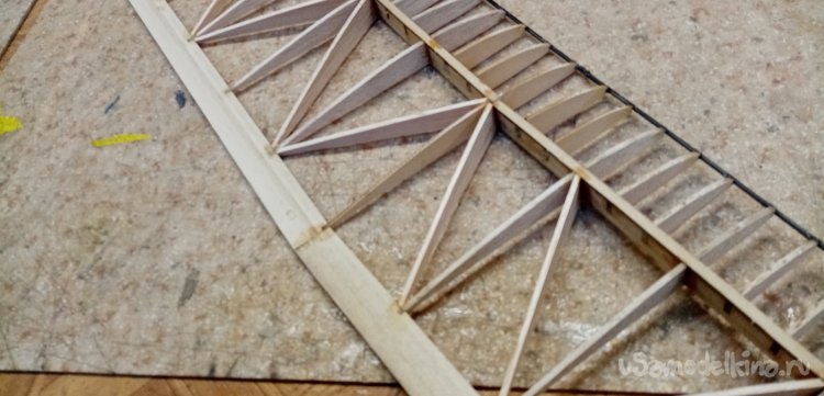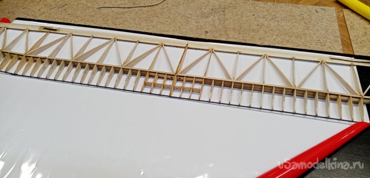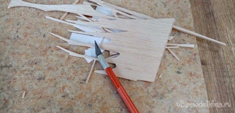Вырезал нервюры усиления из бальзы толщиной в 1,5мм.