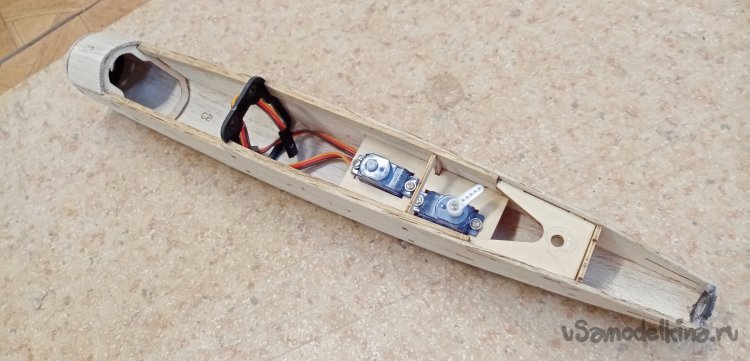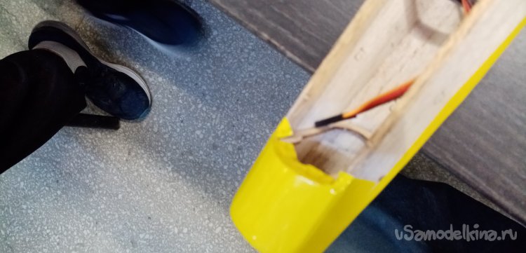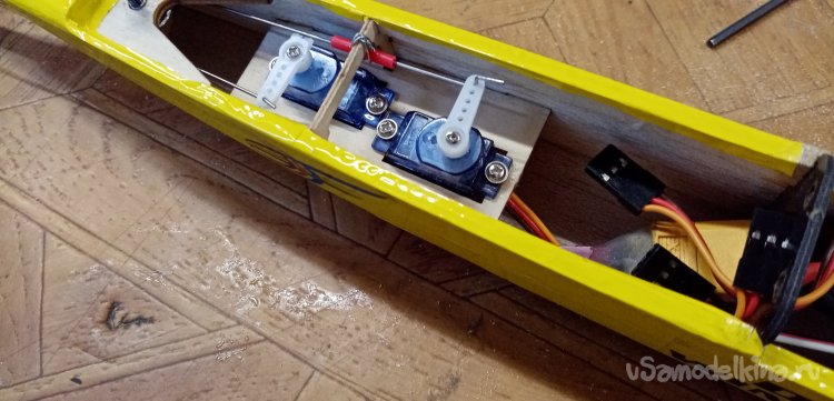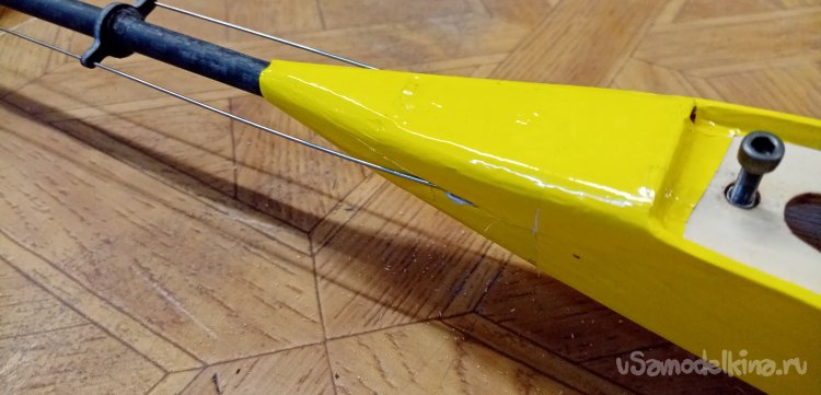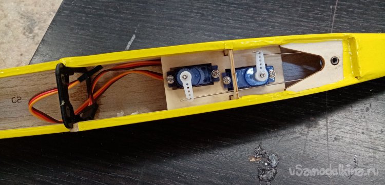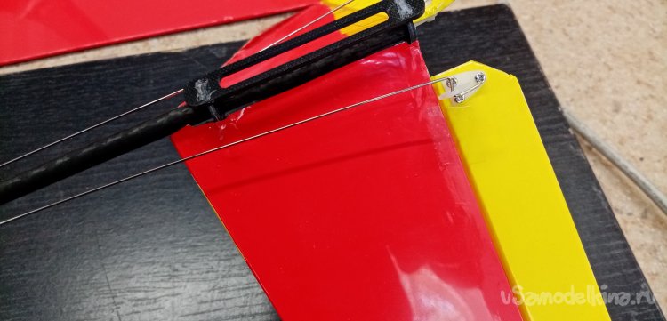 После установки кабанчиков провожу проволоку управления от сервоприводов на рулевые поверхности через специальные ушки. Расположенные вдоль хвостовой балки.