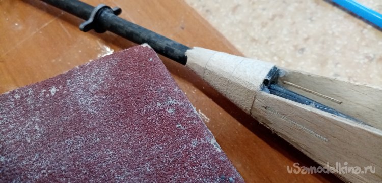 Вклеил хвостовую балку, обточил заготовки на конус.