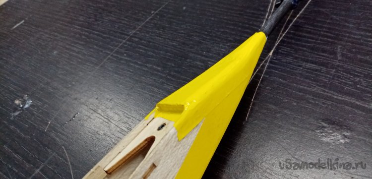 После проливки всех соединений крыла клеем ПВА, оно стало значительно прочнее. Все высохло. Можно приступать в обтяжке.