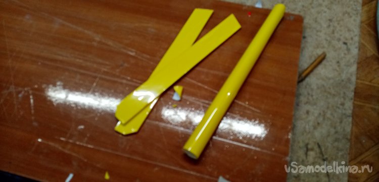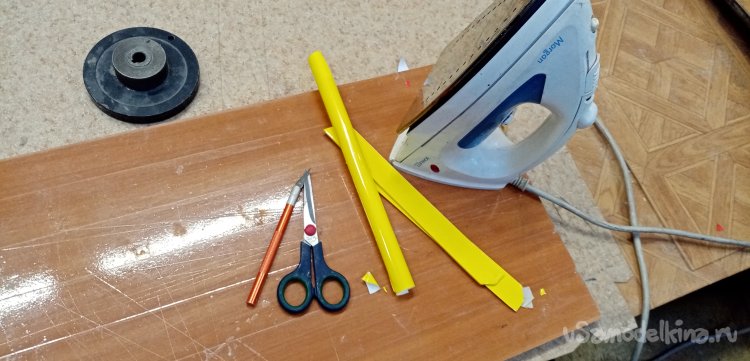 Поскольку в руках желтый цвет. Сразу декорирую рули на правления на « V» образном хвостике. В некоторых случаях при оклейке применяю простой большой утюг.