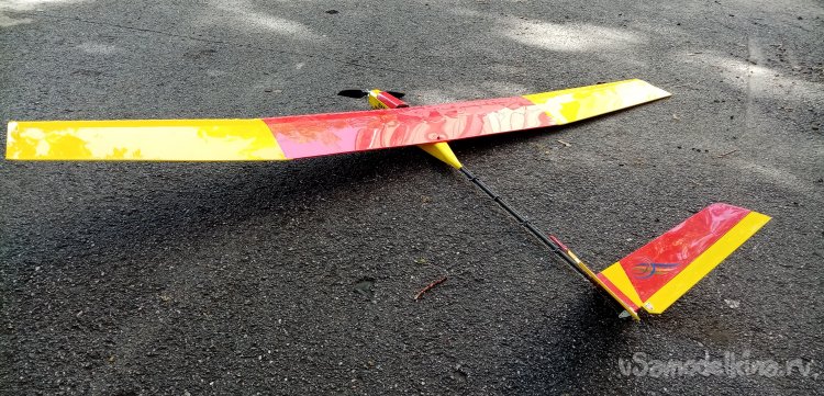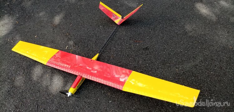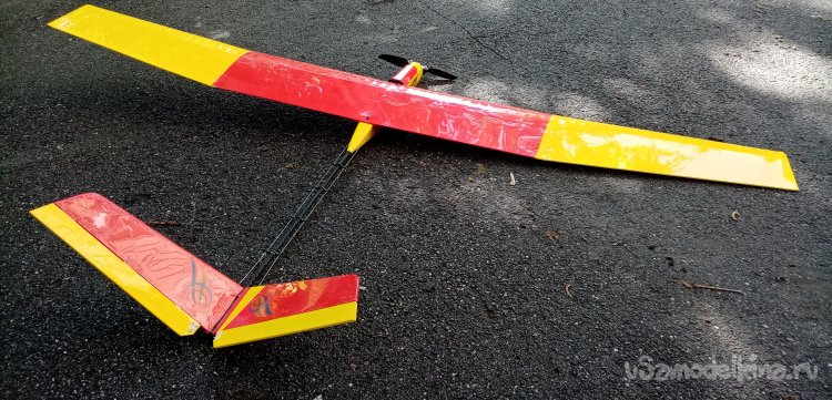 Планер остался в моделке. Нужно отремонтировать мотораму и все будет хорошо. Еще полетает.