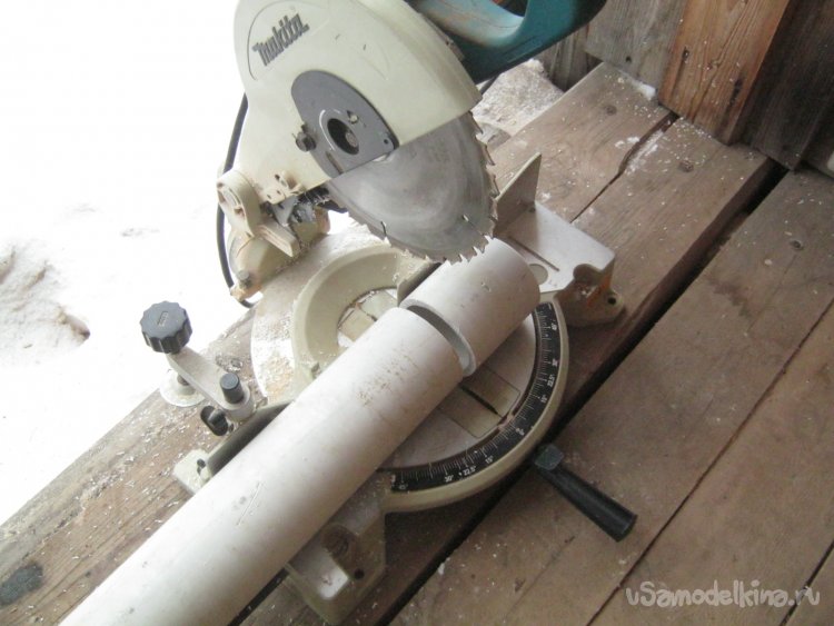Фото 7. Зная длину намотки разметил заготовку-трубу и отхватил лишнее на торцевой пиле, ножом зачистил заусенцы.