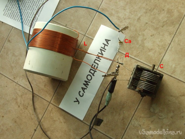 Колебательный контур приемника. Прежде всего пришлось более-менее точно определить диапазон нужных частот – там, где есть достаточно мощные, громкие радиостанции, а лучше несколько. Темной ночкой покрутил настройку старенького транзисторного «Океана» с разложенной табельной суставчатой антенной. Наиболее плотно обжитым мощными вещательными станциями оказался участок КВ около 50 м (6 МГц). Самые громкие - несколько нерусских станций с новостями и музыкой и мощная русскоязычная «Международное радио Китая», как потом выяснилось, расположенная в Пекине, вещающая мощностью 500 кВт. Годится!