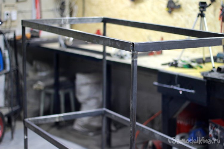 Вот так формируется полочка. На все выставление - 5 минут. Следующим шагом нужно приварить вертикальные направляющие - я их сделал где-то из профиля 20*40, а когда он кончился, то использовал 20*20.