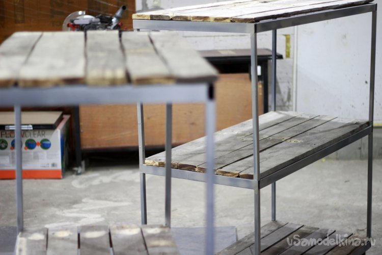 Я их (полки) чуток шлифанул и обрезал под каждый стеллаж.