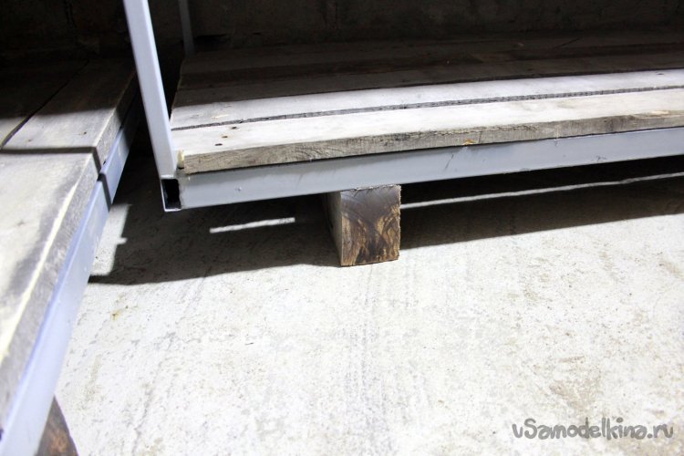 Поставил на бруски от тех же самых поддонов. Они шириной 70мм, а высотой 100мм.