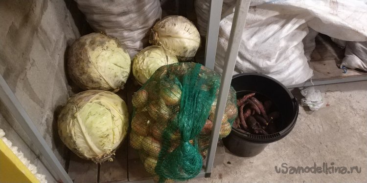 На момент укладывания овощей в погребе было довольно тепло +8-9 градусов. В морозы температура держится где-то +1.