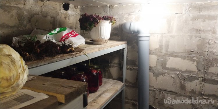 Также у меня есть индикаторы - две баклажки сверху и снизу. Если в них нет льда - значит, погреб не промерзает.