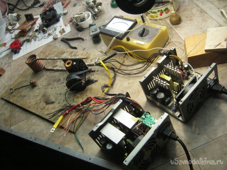 Небольшая низковольтная транзисторная установка нагрева металлов токами высокой частоты (ТВЧ) собрана на основе недорогого доработанного китайского модуля и пары модернизированных блоков питания (БП) от старой компьютерной техники. Прибор предназначен для лабораторного ВЧ нагрева мелочей в домашней мастерской, в том числе и при изготовлении самодельных электровакуумных приборов (ЭВП) – обезгаживание электродов при откачке, нагрев геттера, отжиг в импровизированных вакуумных или водородных микропечах.